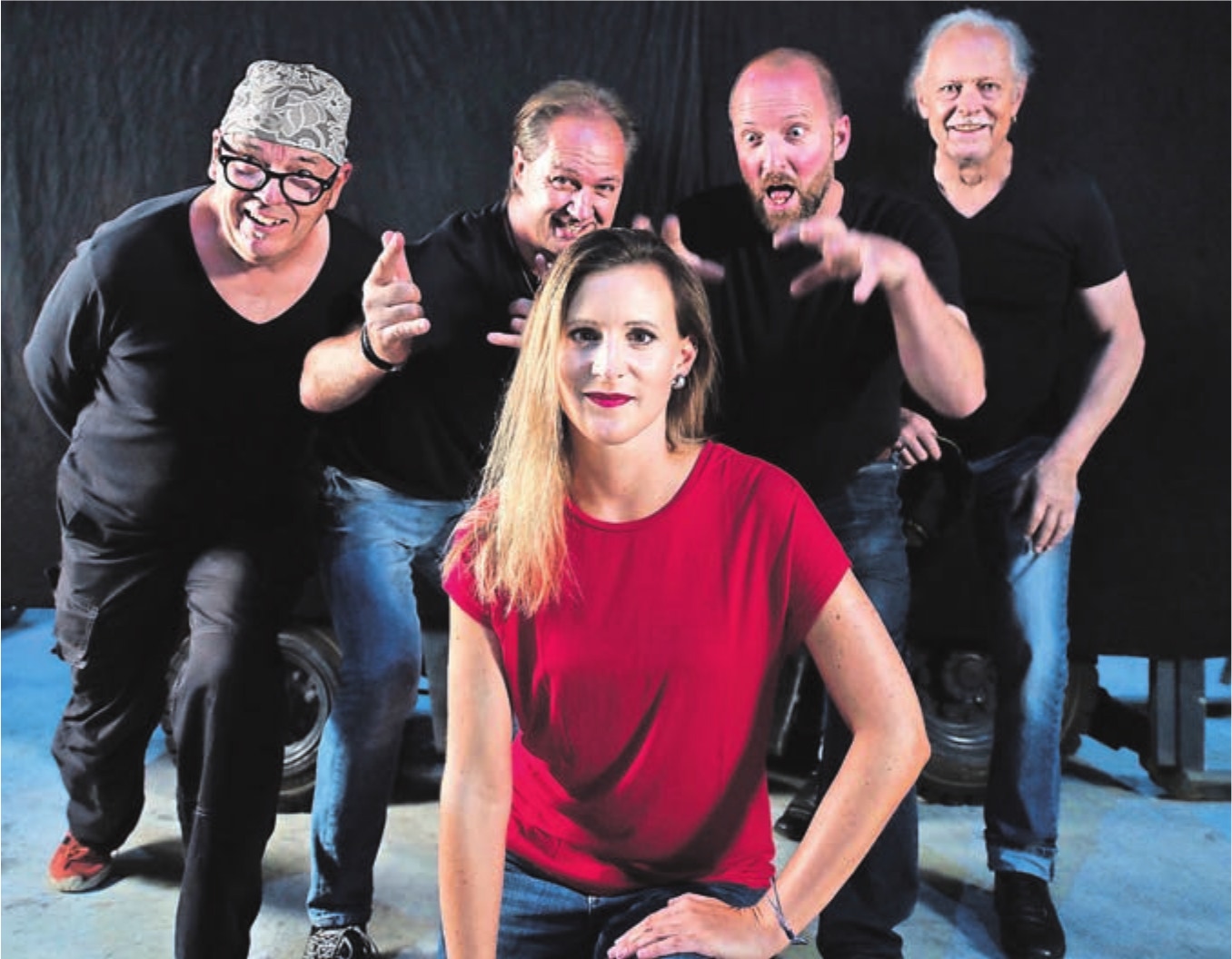 Die Band Scafusa freut sich auf den Heimauftritt in Wohlen, hinten (v. l.): Küde Hüsler, der Wohler Urs Köpfli, Mega Remensberger und Urs Keller. Vorne Frontfrau und Sängerin Rahel Marley. Bild: pd